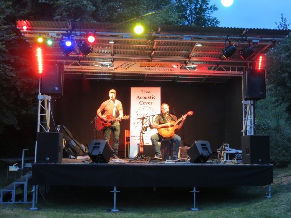 Durch die Zusammenarbeit mit der Fa. FS Showtechnik besteht seit Sommer 2016 die Möglichkeit einen kompakten Bühnenanhänger (BxTxH: ca. 5,60m x 3,80m x 2,30m hinten, 3,40m vorn über dem Bühnenboden) zu leihen. - selbstverständlich gern auch mit kompletter Technik!
